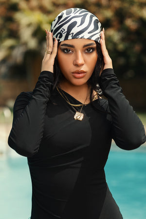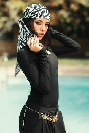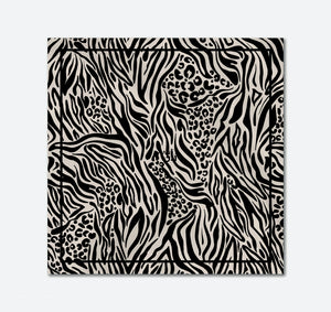 This scarf brings the heat—literally and stylistically. A bold fusion of zebra and leopard. patterns, untamed energy. breathable satin.
