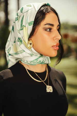 Printed on smooth, breathable satin, it’s made to brighten up anything you wear—around your hair, neck, bag, or wrist. Minimal but full of life, this piece is your go-to for effortless summer freshness.